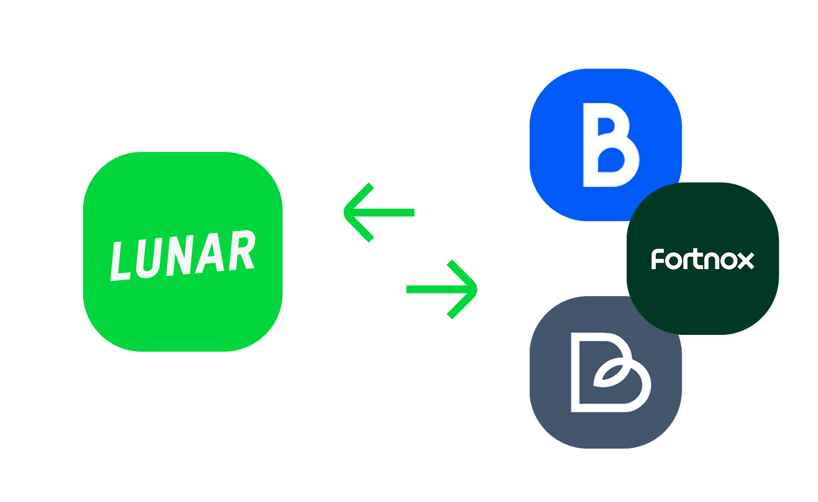 Idag kan du ansluta Fortnox, Bokio eller Bolageriet till Lunar. Vi jobbar även på att möjliggöra integrationer till fler populära bokföringssystem.