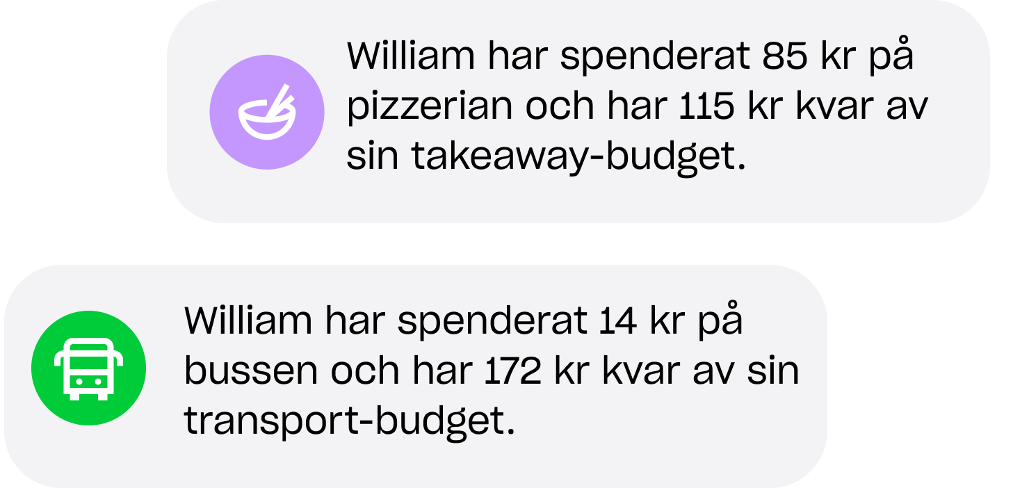 - Följ ditt barns utgifter i realtid.